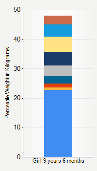 This chart shows weight percentiles, according to the CDC, for girls 1 year 10 months of age. To determine an individual's percentile, find the range that includes their weight. This percentile is not a reflection of optimal weight for an individual, it is only for comparing against a population sample. Use the navigation links above the summary chart to view the weight chart for a different age, or to switch between boys and girls or pounds and kilograms.